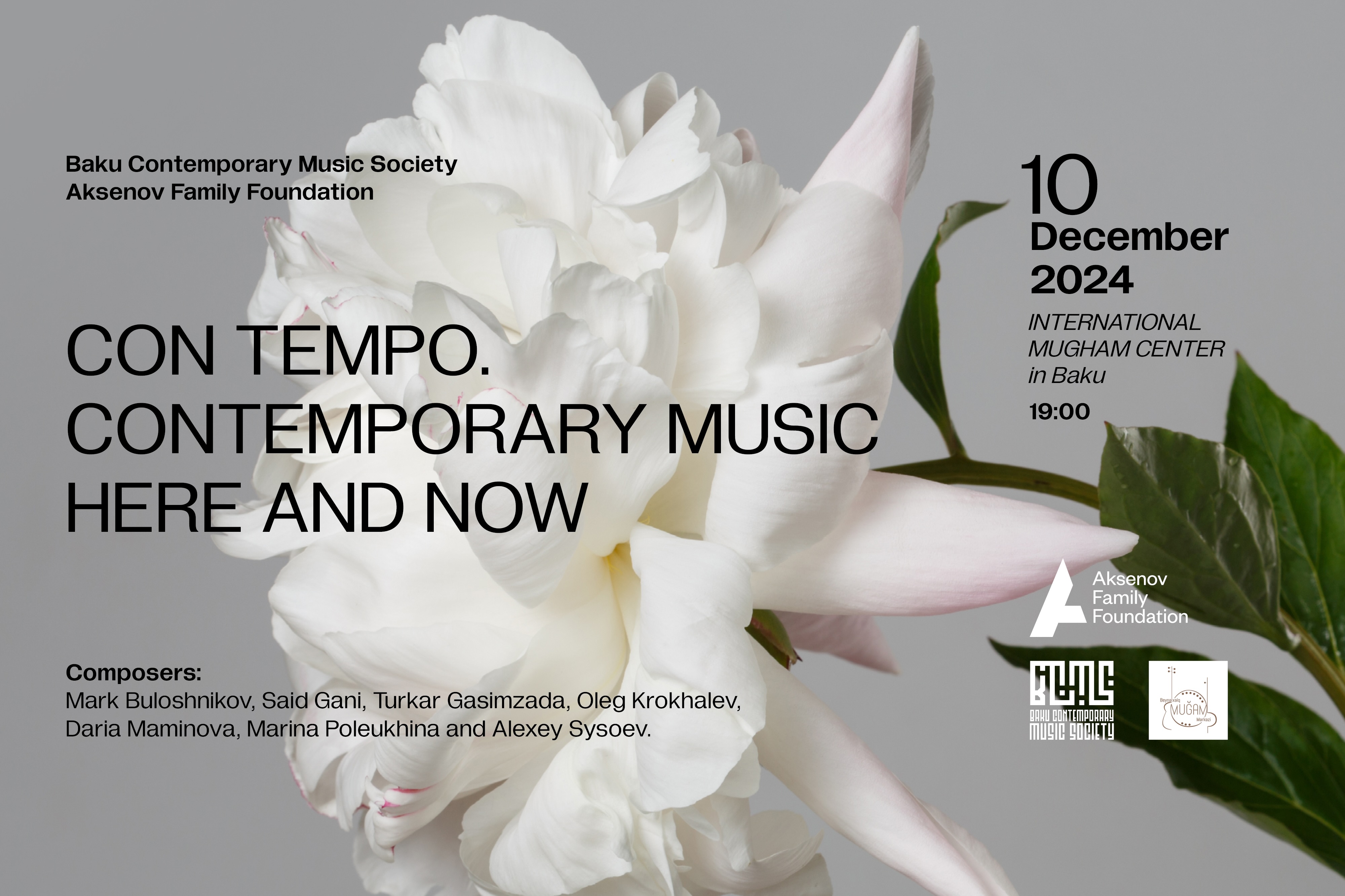 Aksenov Family Foundation and Baku Contemporary Music Society present CON TEMPO. Contemporary Music Here and Now — a concert featuring 7 world premieres and a public program, which will take place on December 10, 2024, at the International Mugham Center in Baku. CON TEMPO project creates a space for the exchange of experiences between musicians from different countries and generations, building cultural bridges and reflecting on the fate of contemporary art in a changing world. The concert by the Moscow Contemporary Music Ensemble (MCME) and N’Caged vocal group will showcase works by composers from Azerbaijan and new compositions by the laureates of the Aksenov Family Foundation project Russian Music 2.0 — Mark Buloshnikov, Said Gani, Turkar Gasimzada, Oleg Krokhalev, Daria Maminova, Marina Poleukhina, and Alexey Sysoev. The public program will bring together a series of masterclasses, round tables and talks featuring leading composers, music producers, and musicologists from both countries.